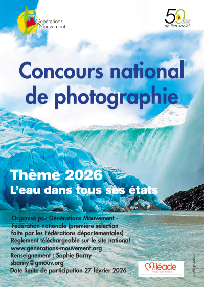 Le thème du Concours national de photos 2026 de Générations Mouvement, est « l’eau dans tous ses états »
